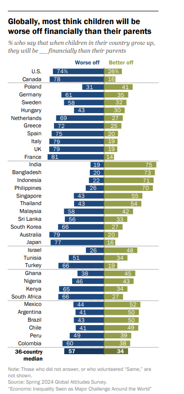 Παγκοσμίως το 57% θεωρούν ότι η επόμενη γενιά θα ζήσει χειρότερα, από οικονομικής άποψης, από ό,τι οι ίδιοι.
