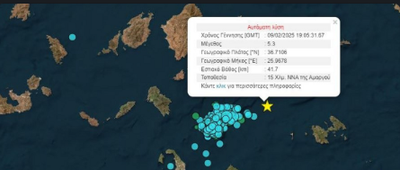 στην φωτό η εκτίμηση ήταν 5,3 Ρίχτερ) να σημειώνονται μεταξύ Αμοργού