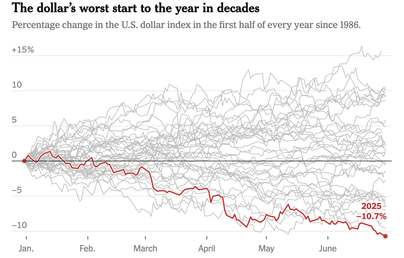 Το δολάριο υποχώρησε περισσότερο από 10% σε μισό χρόνο, η χειρότερη πτώση σε έξι χρόνια από την εγκατάλειψη του συστήματος του χρυσού το 1973.